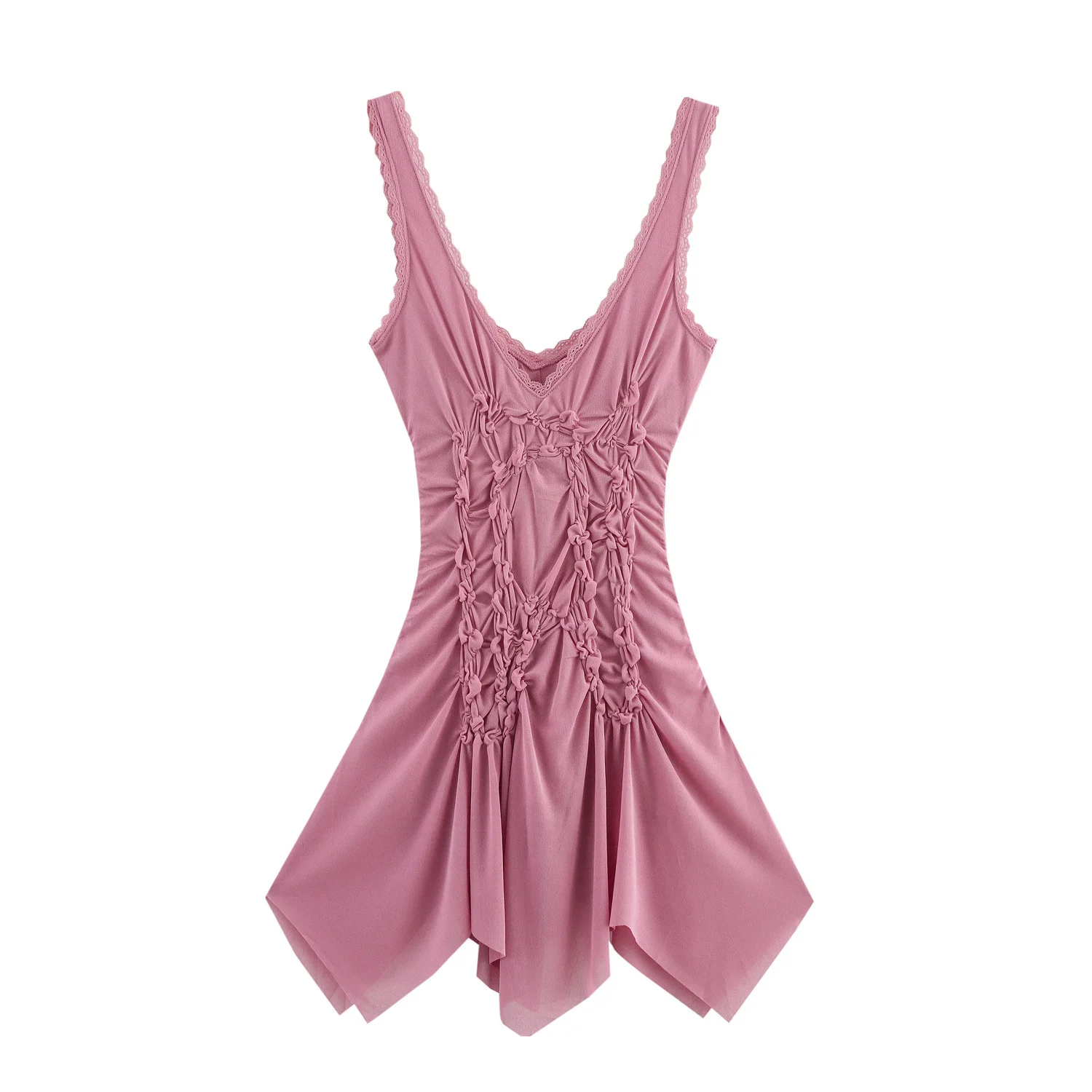 Women's 2025 New Fashion Asymmetrical Pleated Dress Retro Suspender Sleeveless Elegant Female Dress